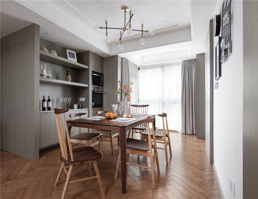 蒸箱烤箱柜外置和酒柜吧完美解決了原有廚房面積過小 無法擴(kuò)展的問題